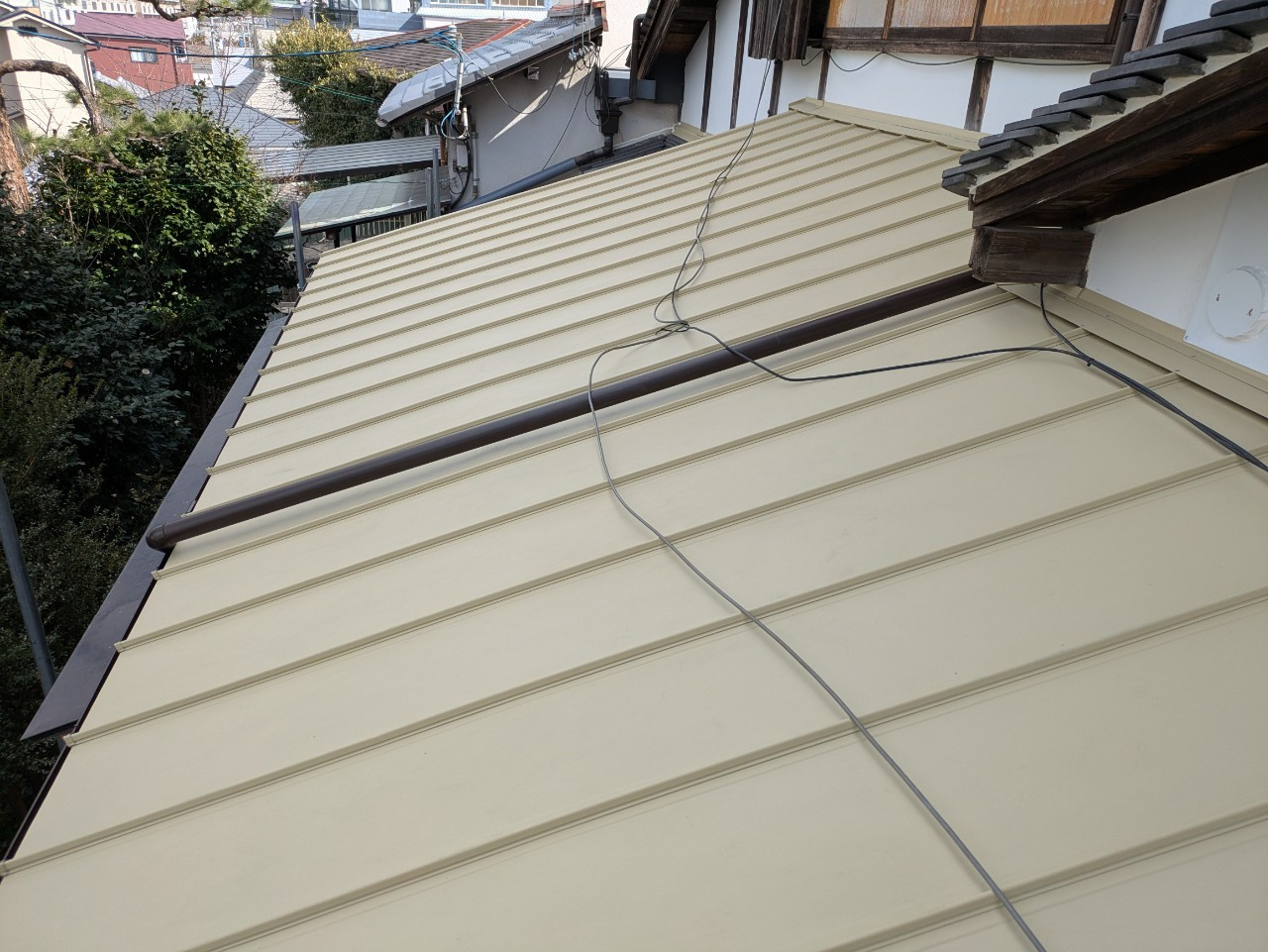 仕上げは塀の色に合わせたガルバリウムにしました。瓦と比べると重量も軽くなります。
